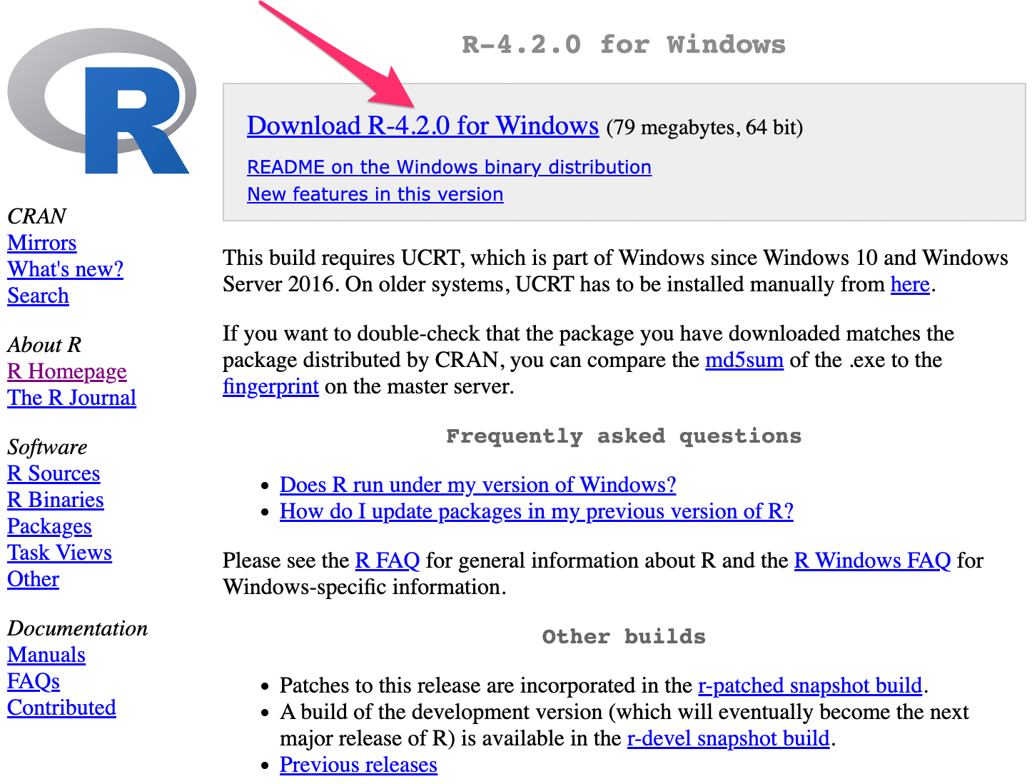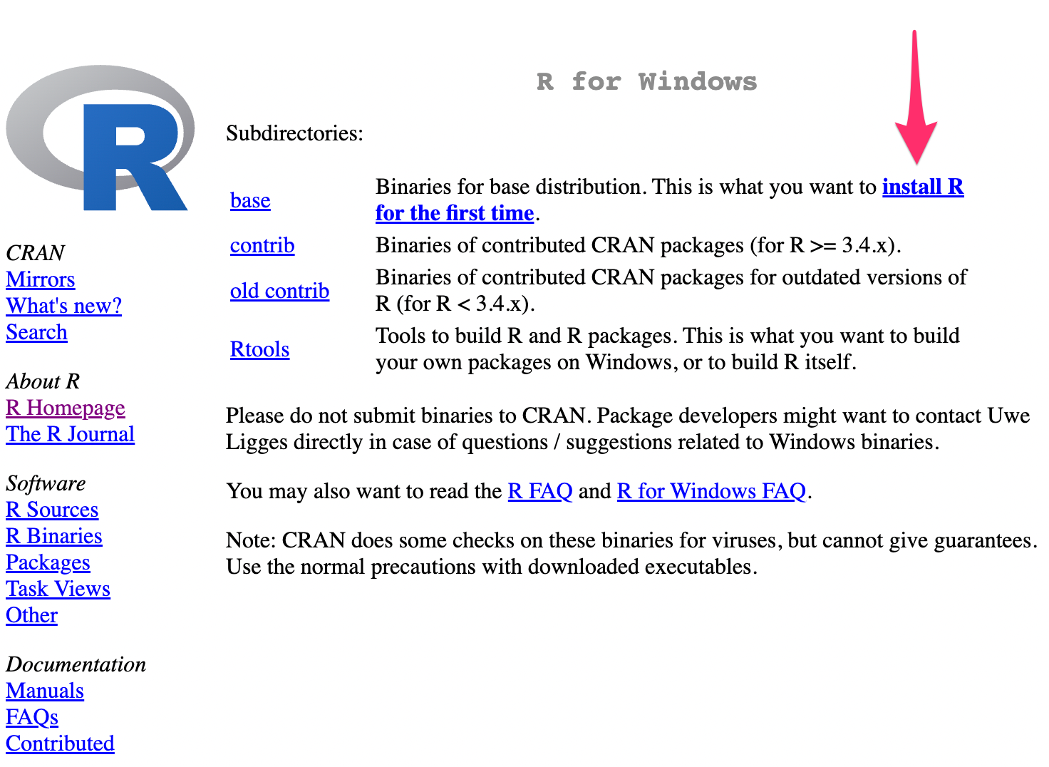 Например, в случае Windows нужно сначала выбрать install R for the first time как показано на рисунке.